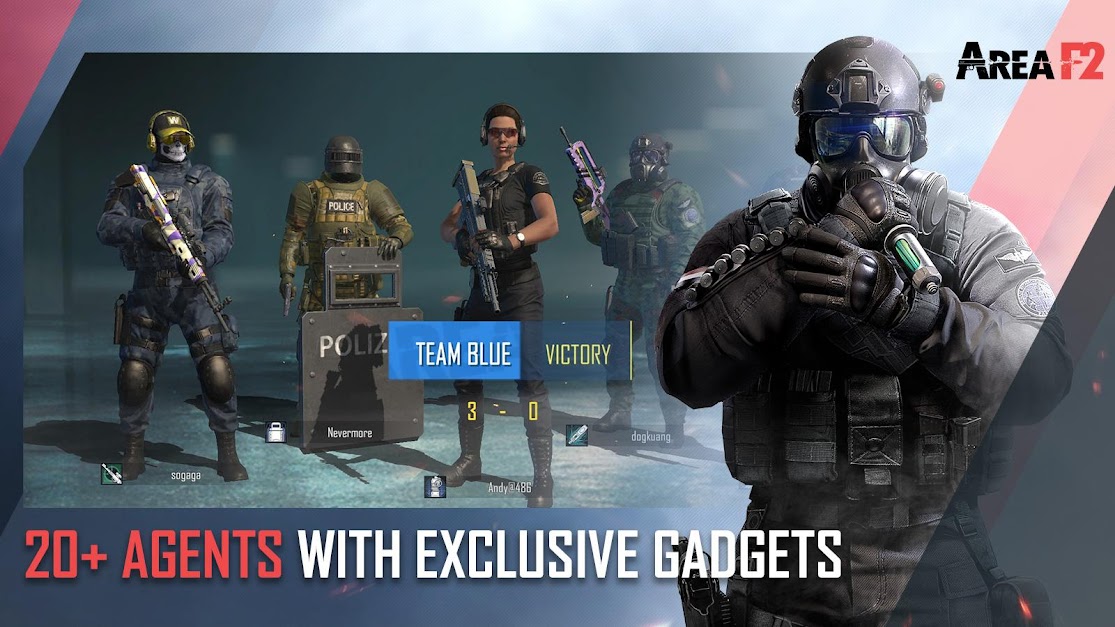 In Area F2, the first Close-Quarters Battle (AKA CQB) shooting game on mobile, players fight over ultra-realistic environments as attacker and defender, playing as one of a wide selection of agents, each with own their special ability. All roofs and walls can be reinforced or destroyed, challenging players' skills and tactics as every wall may become a potential entry point.